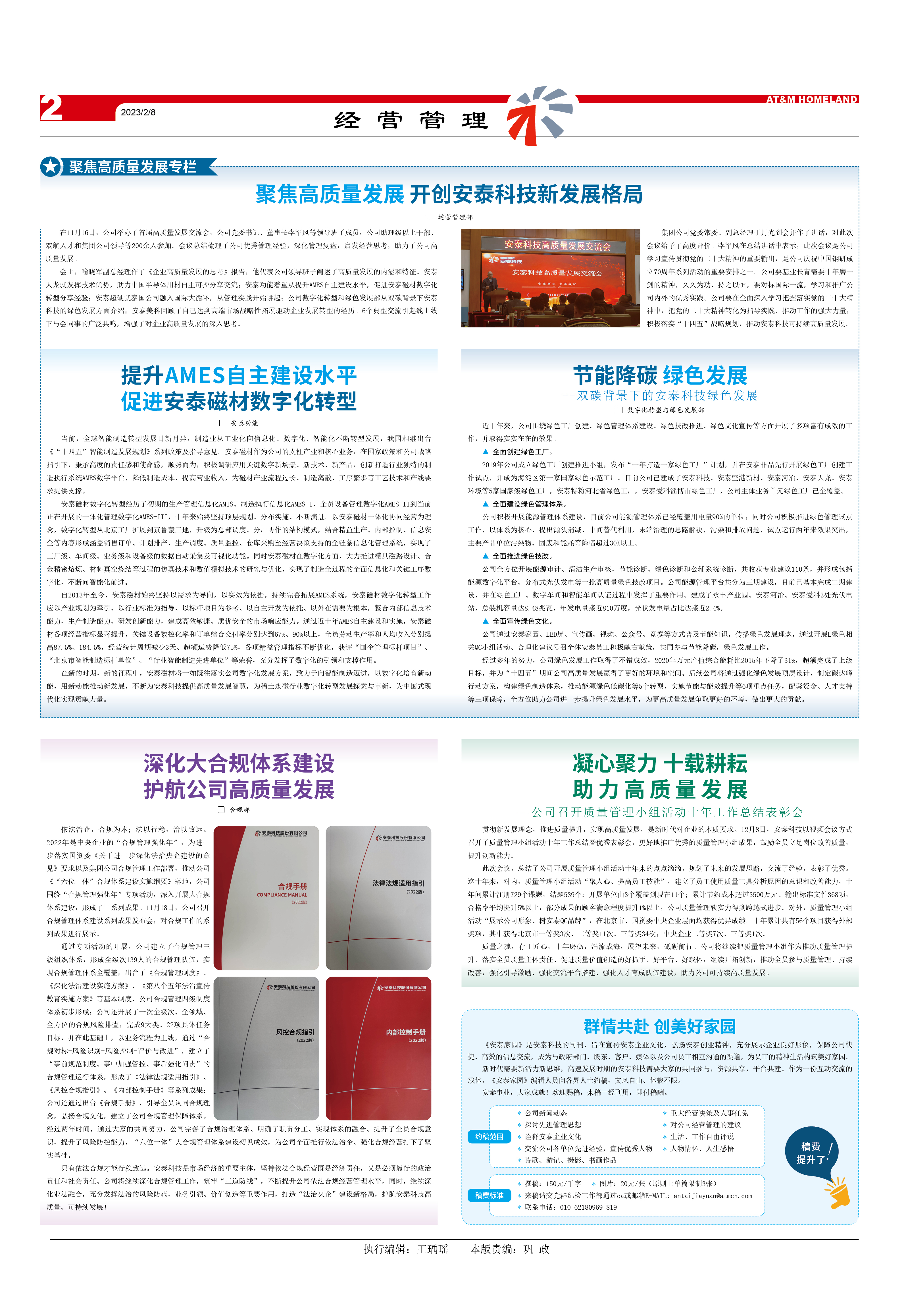 會(huì)上,喻曉軍副總經(jīng)理作了《企業(yè)高質(zhì)量發(fā)展的思考》報(bào)告,他代表公司領(lǐng)導(dǎo)班子闡述了高質(zhì)量發(fā)展的內(nèi)涵和特征。安泰天龍就發(fā)揮技術(shù)優(yōu)勢(shì),助力中國(guó)半導(dǎo)體用材自主可控分享交流;安泰功能著重從提升AMES自主建設(shè)水平,促進(jìn)安泰磁材數(shù)字化轉(zhuǎn)型分享經(jīng)驗(yàn);安泰超硬就泰國(guó)公司融入國(guó)際大循環(huán),從管理實(shí)踐開(kāi)始講起;公司數(shù)字化轉(zhuǎn)型和綠色發(fā)展部從雙碳背景下安泰科技的綠色發(fā)展方面介紹;安泰美科回顧了自己達(dá)到高端市場(chǎng)戰(zhàn)略性拓展驅(qū)動(dòng)企業(yè)發(fā)展轉(zhuǎn)型的經(jīng)歷。6個(gè)典型交流引起線上線下與會(huì)同事的廣泛共鳴,增強(qiáng)了對(duì)企業(yè)高質(zhì)量發(fā)展的深入思考。